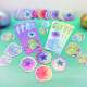 These stickers and double-sided bookmarks are printed on water resistant paper. If you want extra protection against grime and damage, consider the laminated options. (Holo laminate makes them even more intense!)